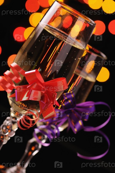 Два праздничных бокала шампанского крупным планом