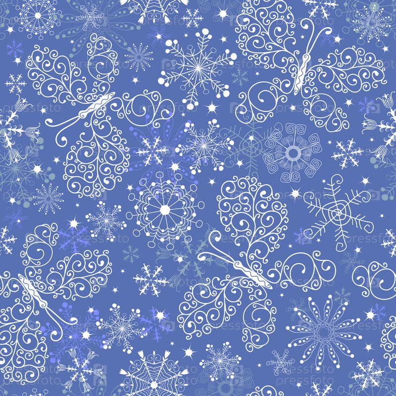 Новогодний фон из бабочек и снежинок