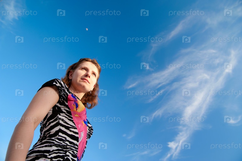 Девушка на фоне голубого неба