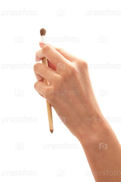 Женская рука держит кисть для рисования на белом фоне