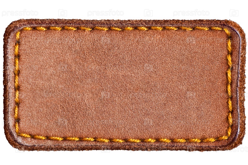Кожаная нашивка на одежду крупным планом на белом фоне