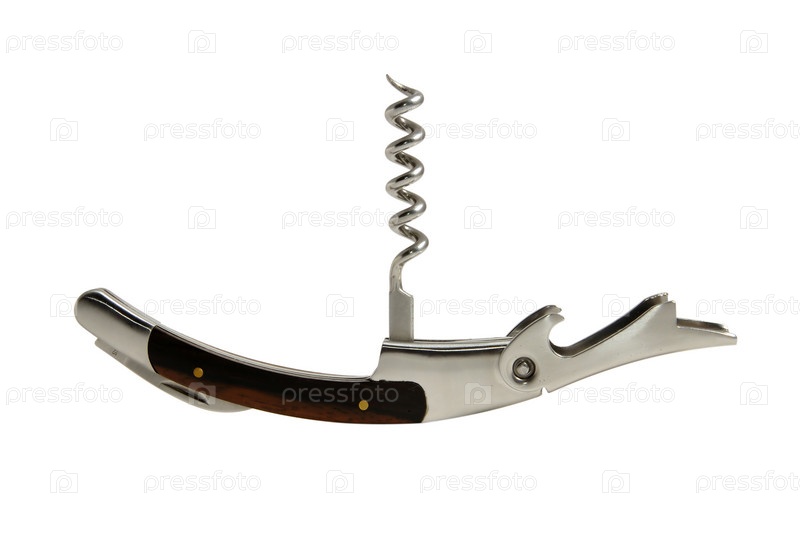 Металлический штопор на белом фоне
