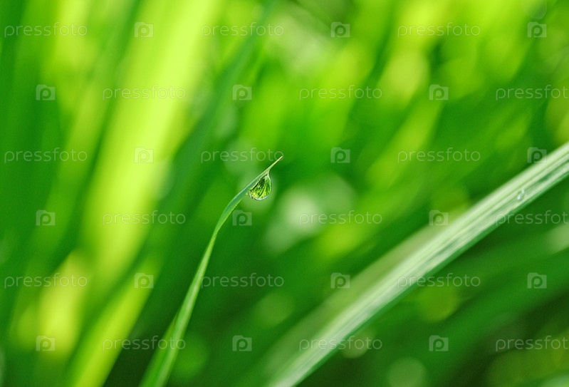 Капелька росы на траве крупным планом