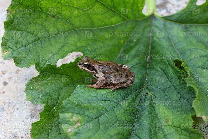 Лягушка на зеленом листе