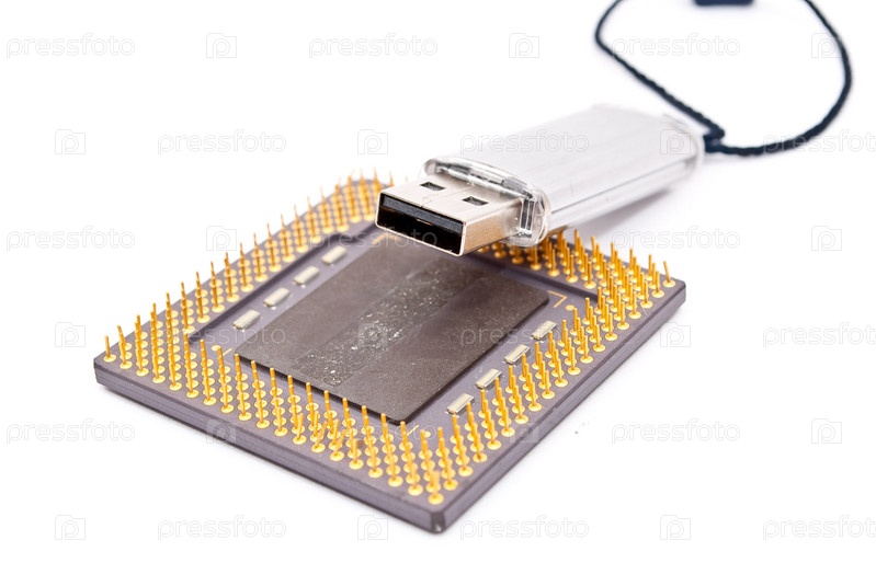 USB-карта и микрочип в крупном плане на белом фоне