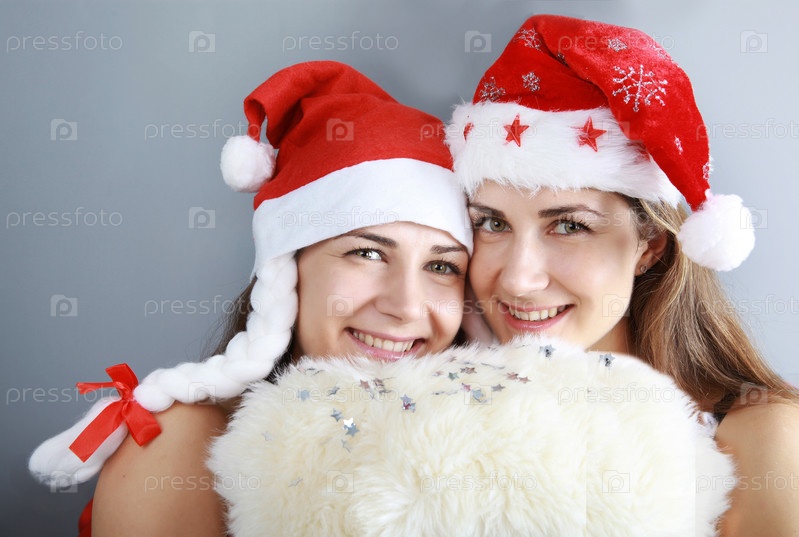 Девушки в новогодних колпаках