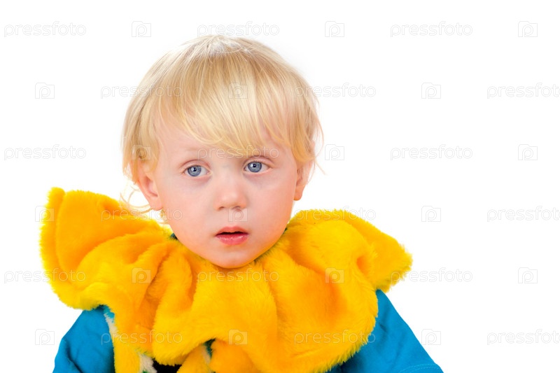 Портрет ребенка в костюме клоуна с желтым воротником