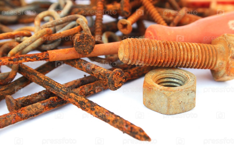 Ржавые гвозди, гайки и болты