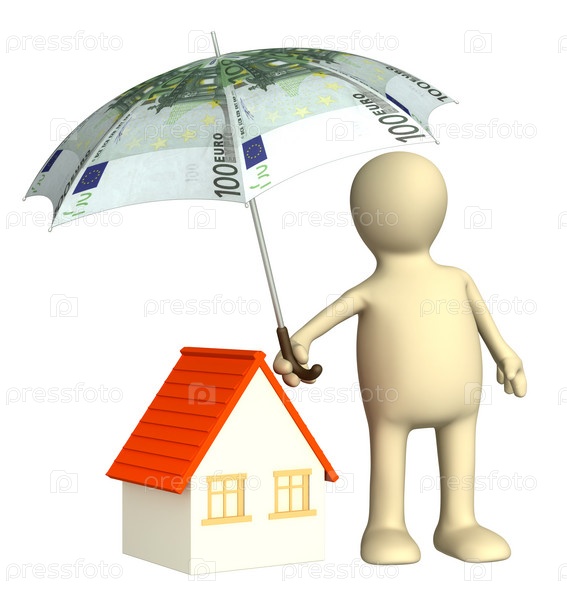Финансовая защита, человечек держит зонт над домиком