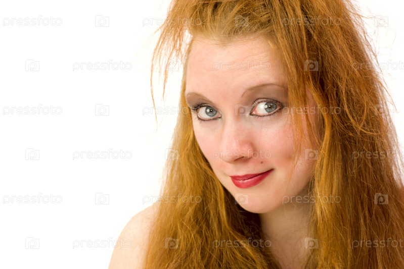 Портрет молодой девушки на белом фоне