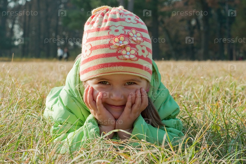 Девочка лежит в траве