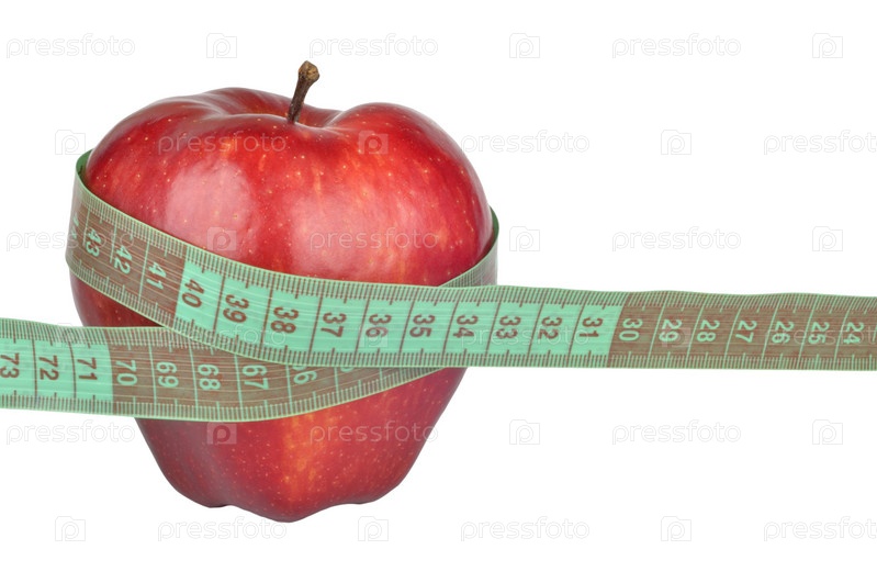 Яблоко и сантиметр на белом фоне