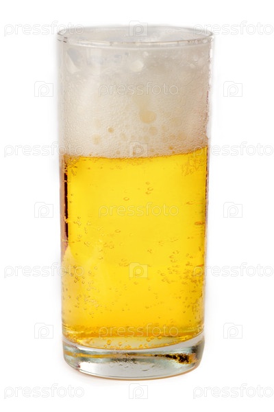 Бокал пива на белом фоне