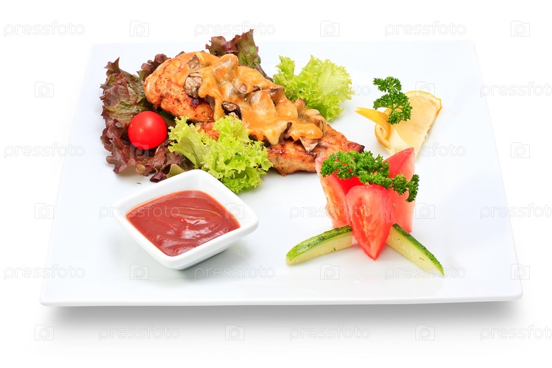 Мясное блюдо с овощами и зеленью