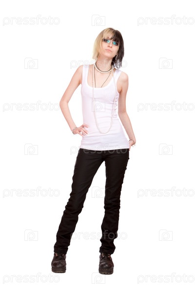 Портрет девушки-подростка с разноцветными волосами на белом фоне