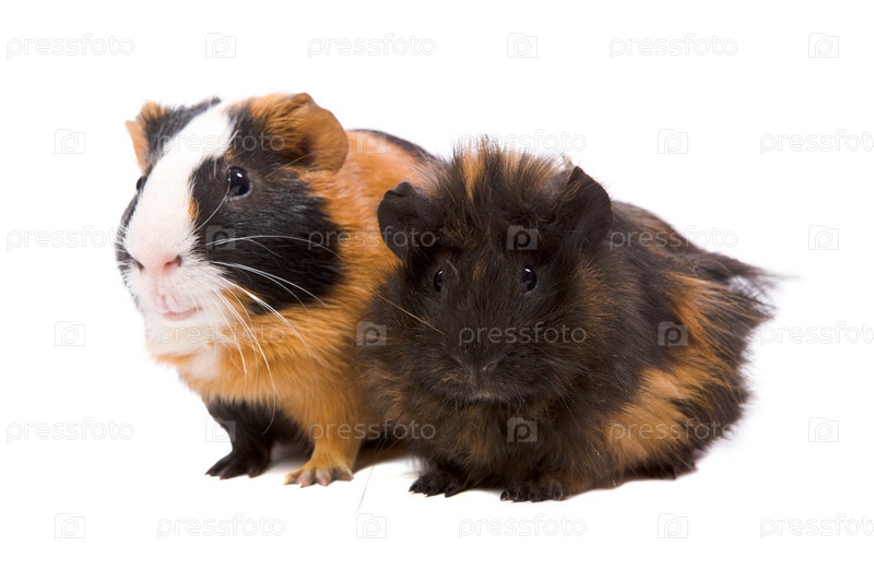 Две морские свинки крупным планом на белом фоне