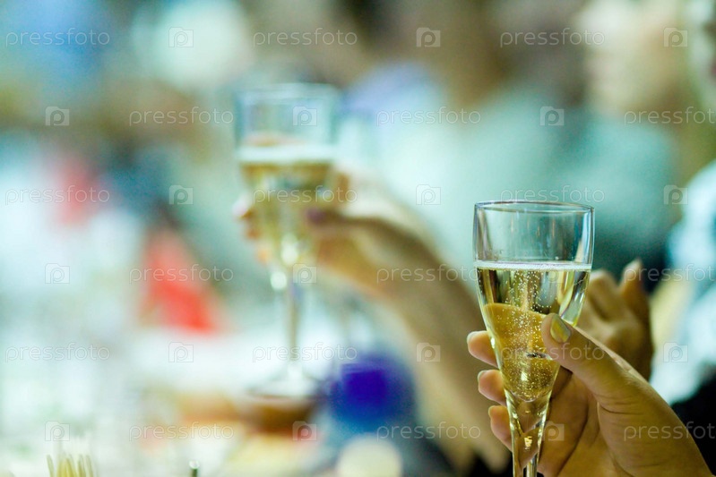 Люди держат бокалы шампанского