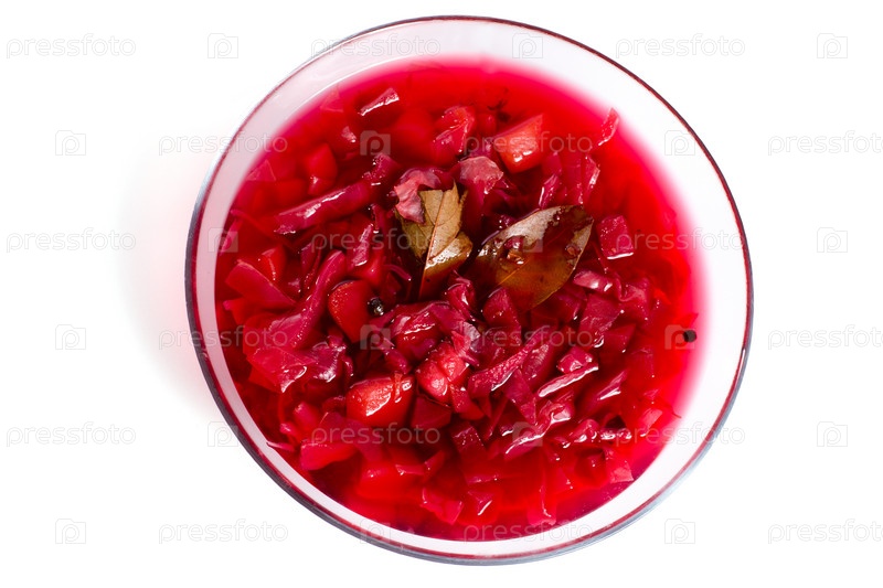 Порция борща в тарелке на белом фоне