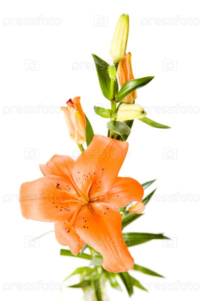 Оранжевая лилия крупным планом на белом фоне