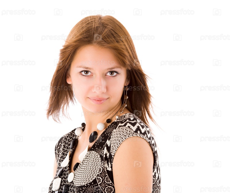 Портрет молодой женщины в платье на белом фоне