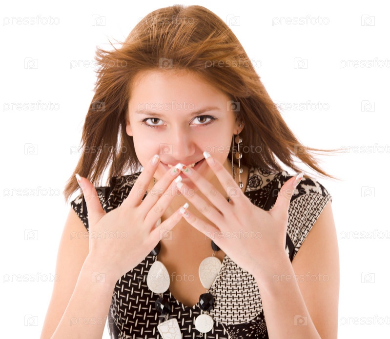 Возбужденная девушка прикрывает рот руками