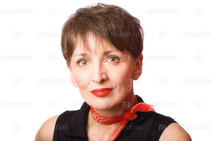 Портрет пожилой женщины на белом фоне