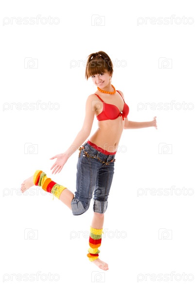 Портрет веселой дквушки в бюстгальтере