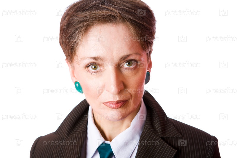 Портрет пожилой бизнес-леди на белом фоне