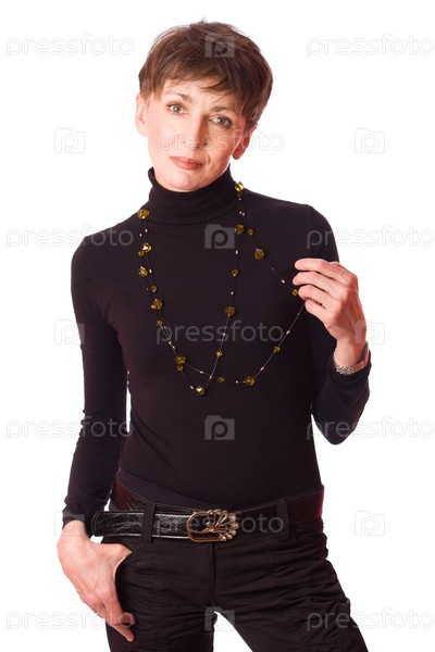 Портрет пожилой бизнес-леди на белом фоне