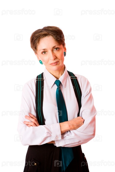 Портрет пожилой бизнес-леди на белом фоне