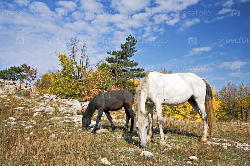 Лошадь с жеребенком пасуться