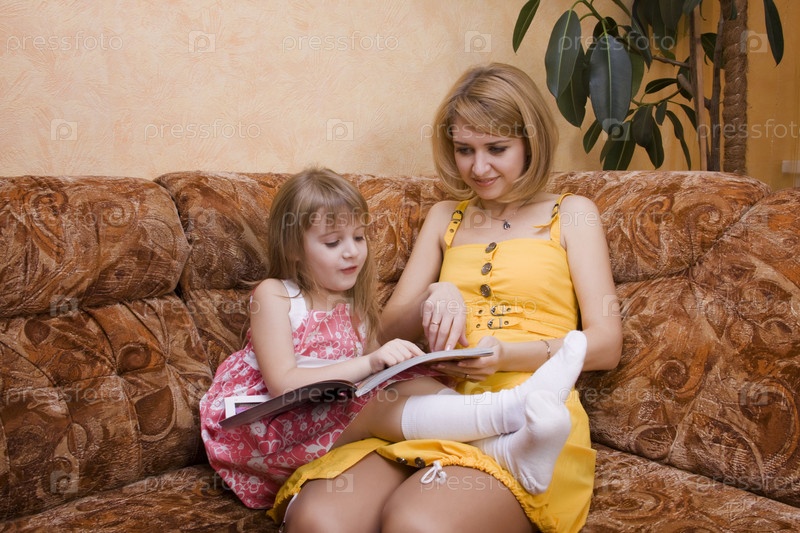 Мама и дочка читают книгу