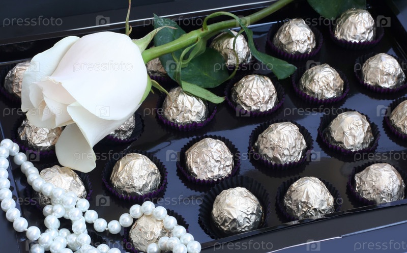 Роза и жемчуг на коробке с конфетами
