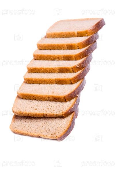Ломтики черного хлеба на белом фоне