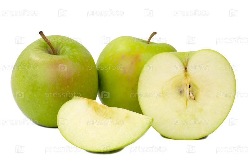 Зеленые яблоки на белом фоне