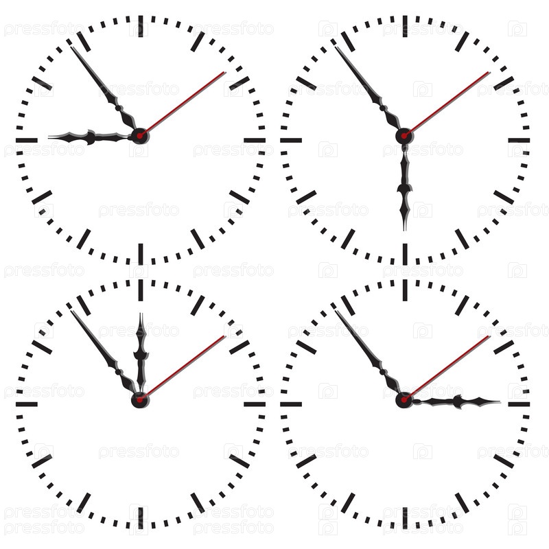 Четыре циферблата на белом фоне
