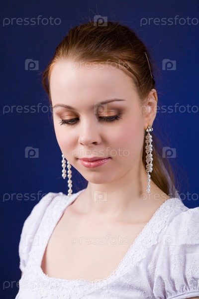Портрет молодой невесты на синем фоне