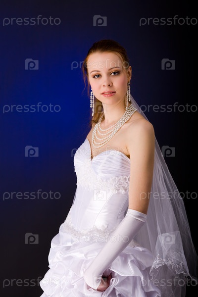 Молодая красивая невеста на синем фоне