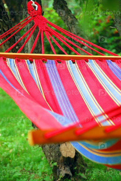 Полосатый гамак, прикрепленный к дереву