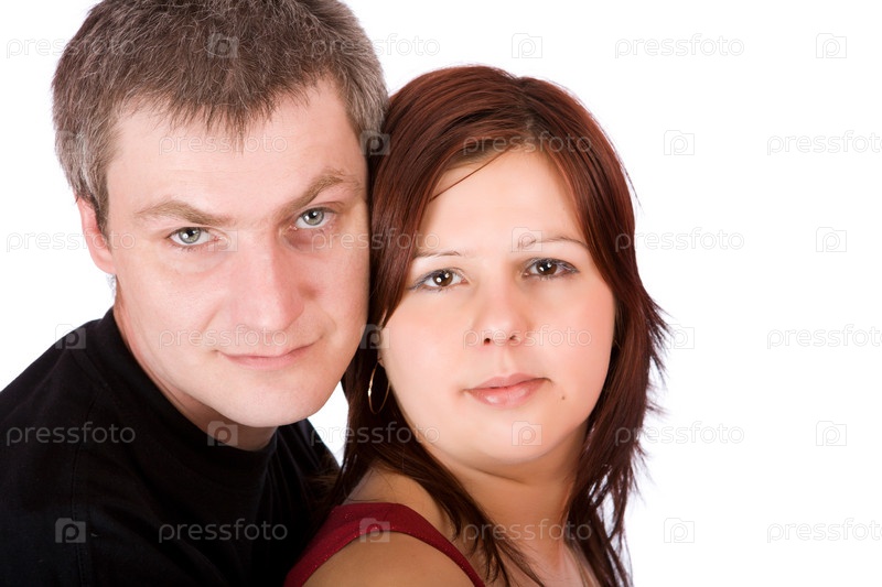 Портрет мужчины и женщины крупным планом на белом фоне