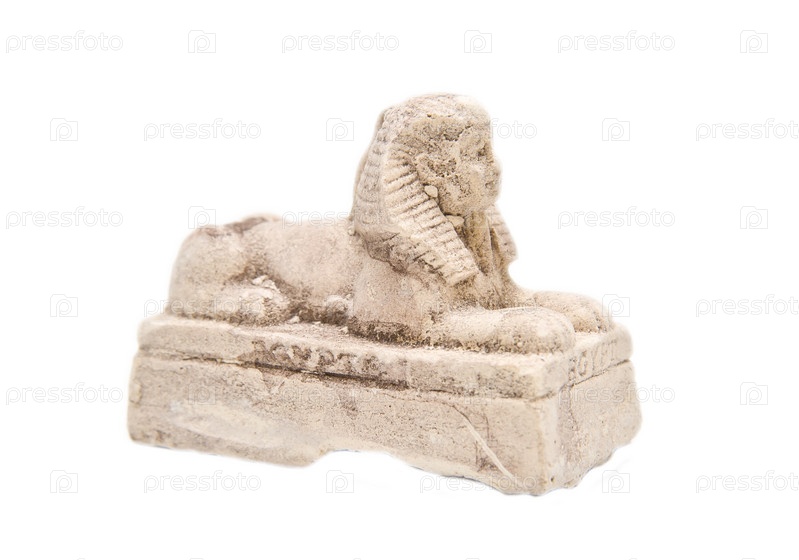Гипсовая статуя сфинкса на белом фоне