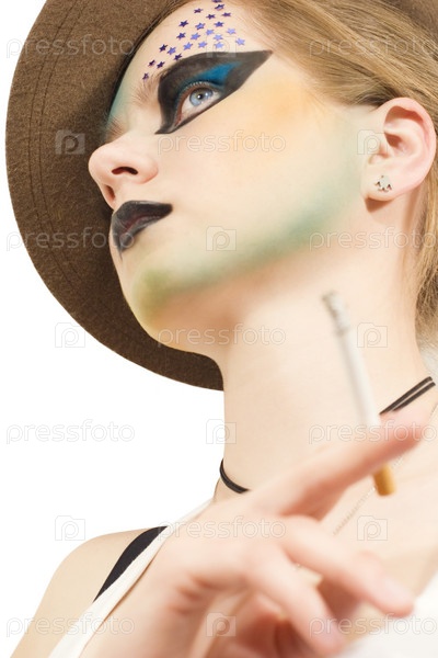 Стильная молодая модель с ярким макияжем