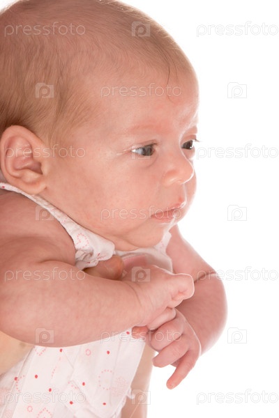 Портрет новорожденного ребенка крупным планом на белом фоне