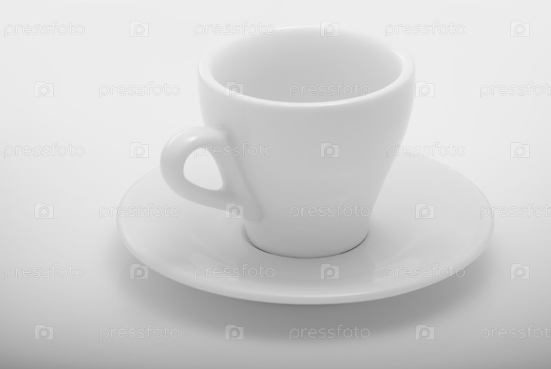 Пустая кофейная чашка, белая и на белом фоне