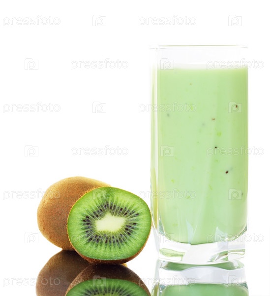 Киви и сок киви на белом фоне