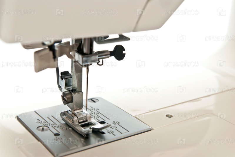 Швейная машинка крупным планом на белом фоне