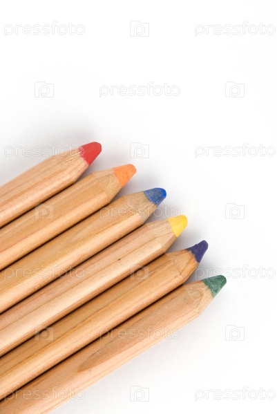 Большие цветные карандаши с тенью на белом фоне