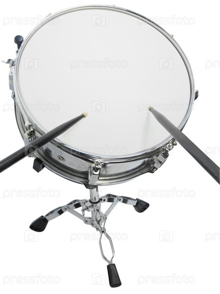 Барабан с палочками на белом фоне