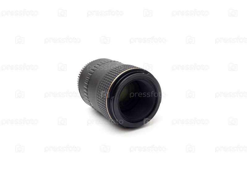 Черный объектив для зеркальной фотокамеры, изолирован на белом фоне