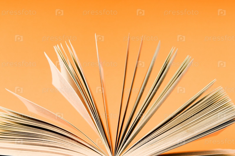 Раскрытая книга на желтом фоне
